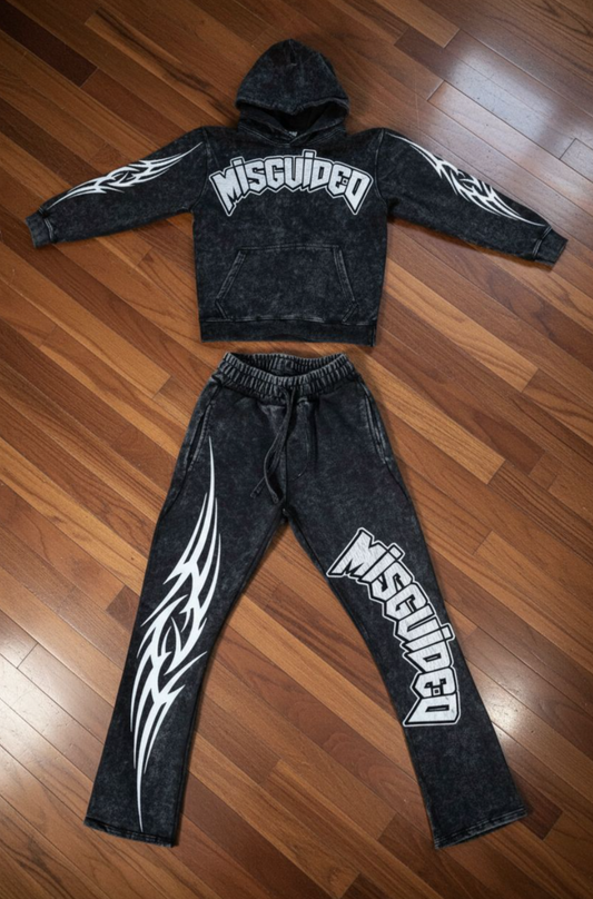 Misguided Heavyweight Acid Wash Stacked Pants Set