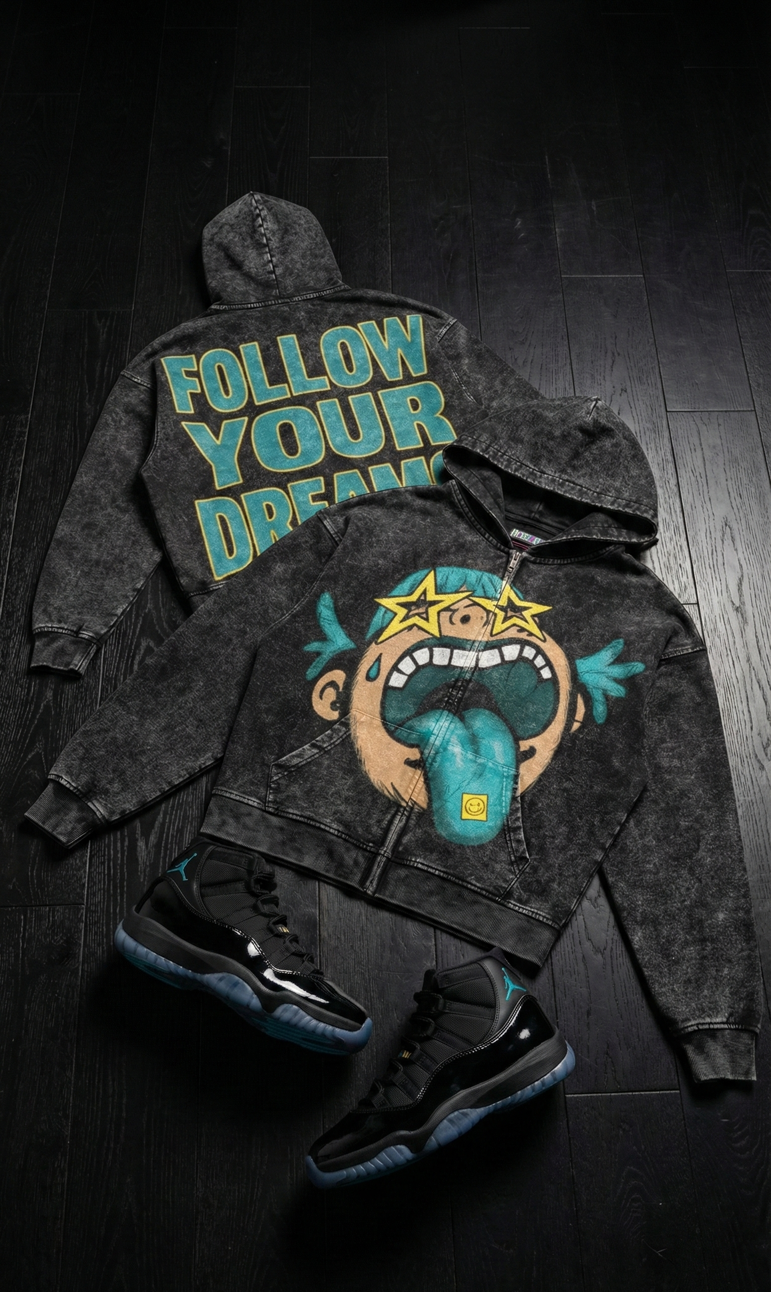 Follow Your Dreams (Air Jordan 11 Gamma Blue) 440GSM Vintage Snow Wash Full-zip Hoodie